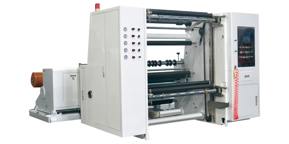 本分切机适用于各种超大型卷材的分切,如50g/m2-300g/m2牛皮纸、白卡纸、淋膜纸、铝箔、PVC塑料等卷材的分切、复卷等。